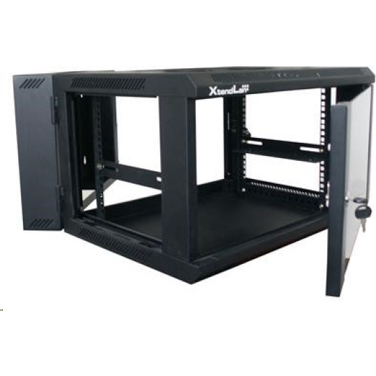 XtendLan 19" dvoudílný nástěnný rozvaděč 15U 600x550, nosnost 60 kg, skleněné dveře, svařovaný,černý