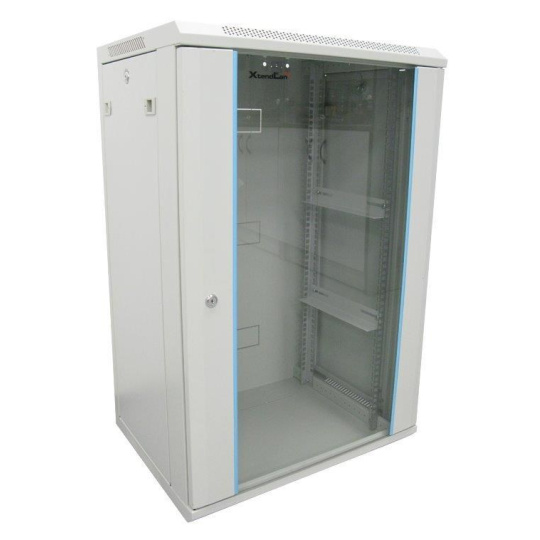 XtendLan 19" nástěnný rozvaděč 15U 600x450, nosnost 60 kg, skleněné kouřové dveře, svařovaný, šedý