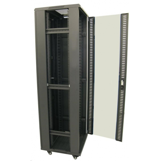 XtendLan 19" stojanový rozvaděč 42U 600x600, nosnost 500kg, skleněné dveře, plná záda, kolečka,černý