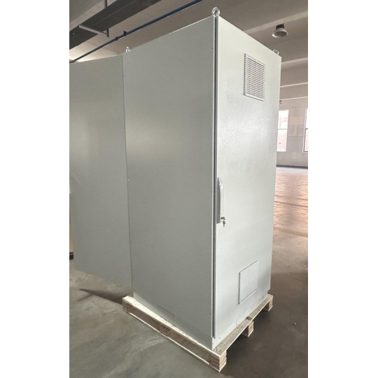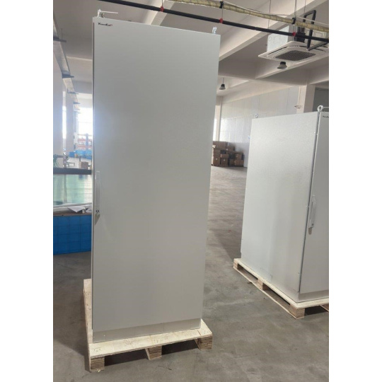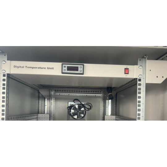 Rozvádzač na inštaláciu dátových a telekomunikačných zariadení, ventilácia s termostatom, podstavec, šedý.