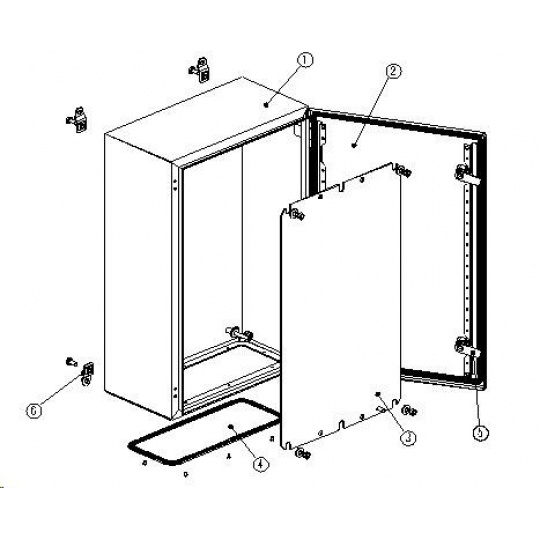 Rozvádzač je vyrobený z valcovej ocele hrúbky 1,5 mm. Normy: IEC60529, EN60529/10.91, GB4208-93  Detaily konštrukcie: dvere - plné, otvárajúce sa o 110 stupňov, montáž pravá alebo ľavá (používateľsky vymeniteľné otváranie) zadný kryt - plný bočný kryt - plný horný kryt - plný  montážna doska: