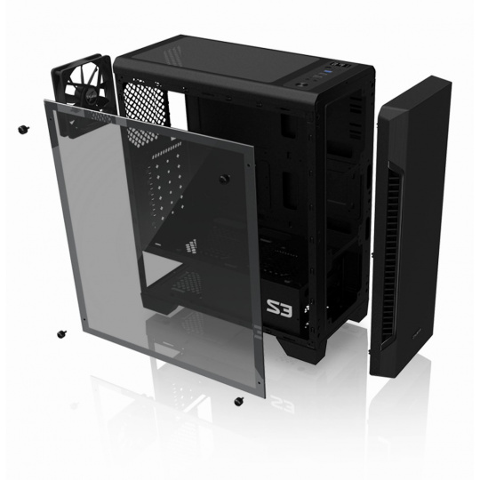 | Podpora ventilátorov | Predné: 3 x 120 mm Horné: 2 x 120 mm Zadné: 1 x 120 mm Spodné: 2 x 120 mm |