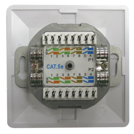 Zásuvka STP 2x RJ45 Cat5E, dvojitá svorkovnica, zapustená