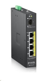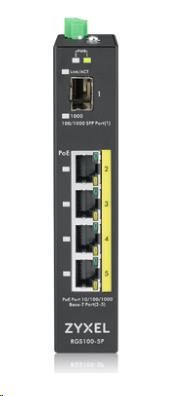 Zyxel RGS100-5P 5-portový gigabitový prepínač PoE, 4x GbE + 1x SFP, rozpočet PoE 120 W, montáž na DIN lištu/stenovú montáž, IP30